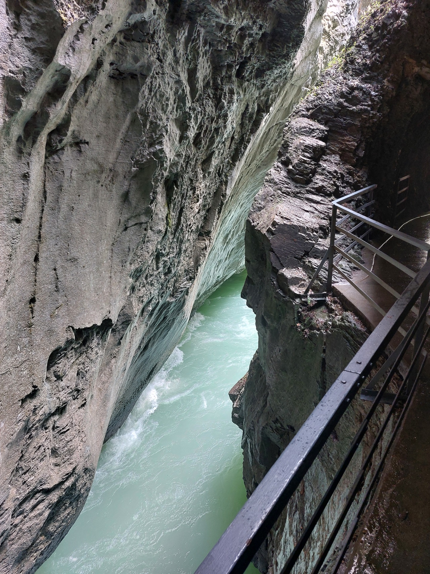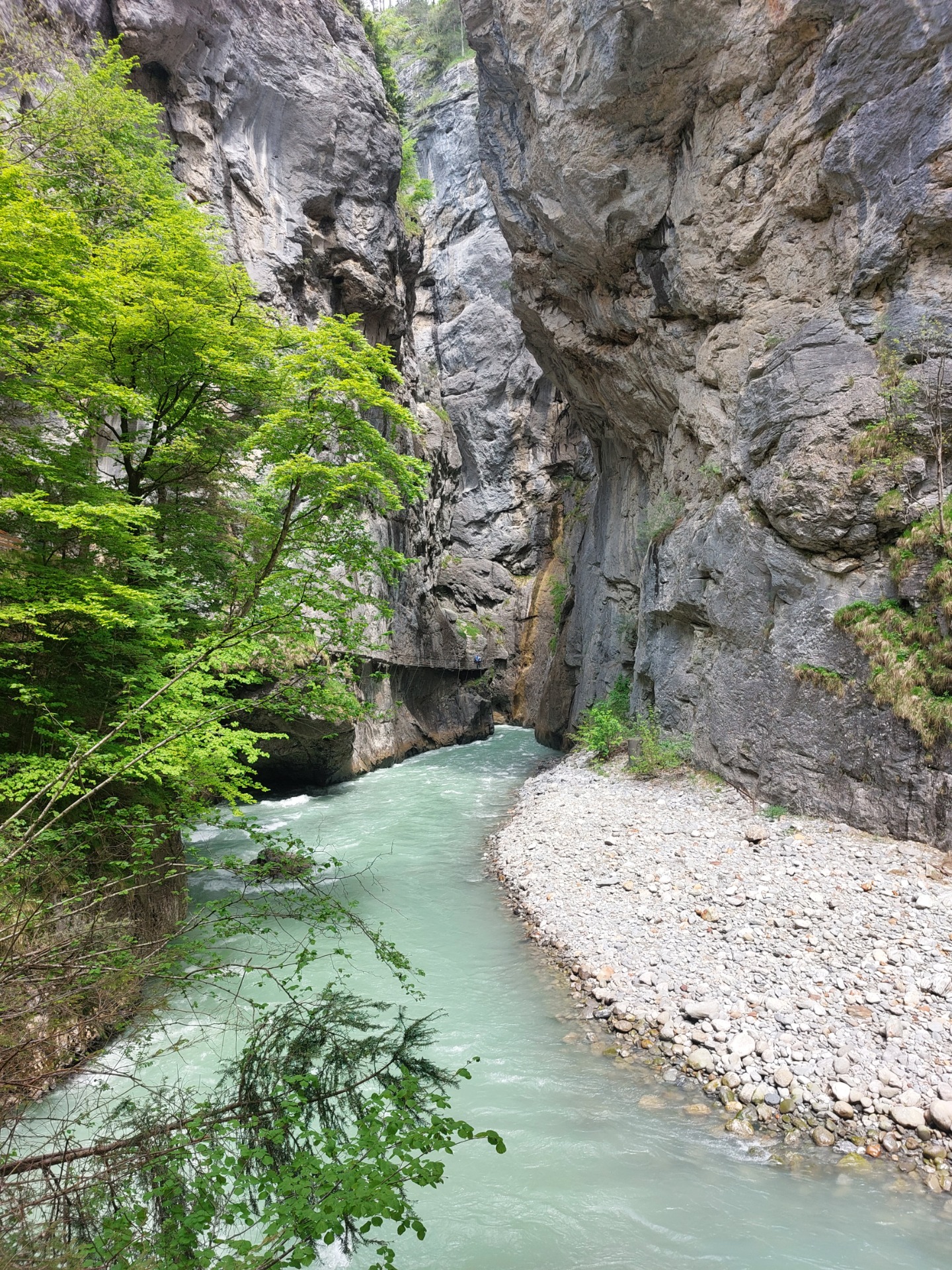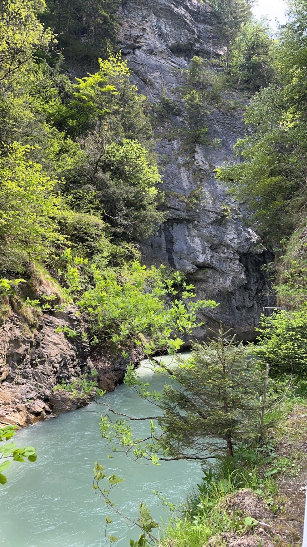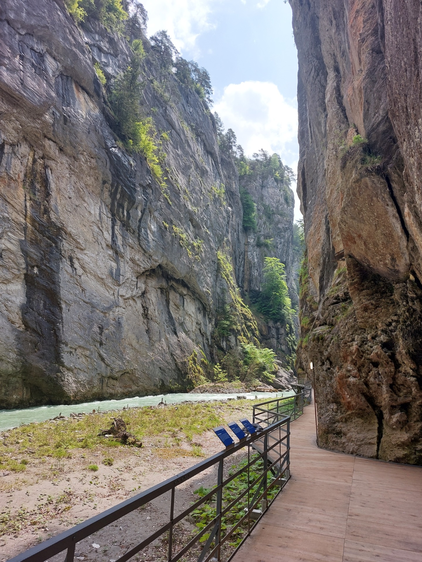 Het was een uurtje rijden naar de Aarresslucht Schattenhalb, Meiringen. Het eerste stukje lopen verbergt de schoonheden die je in de kloof gaat zien.
