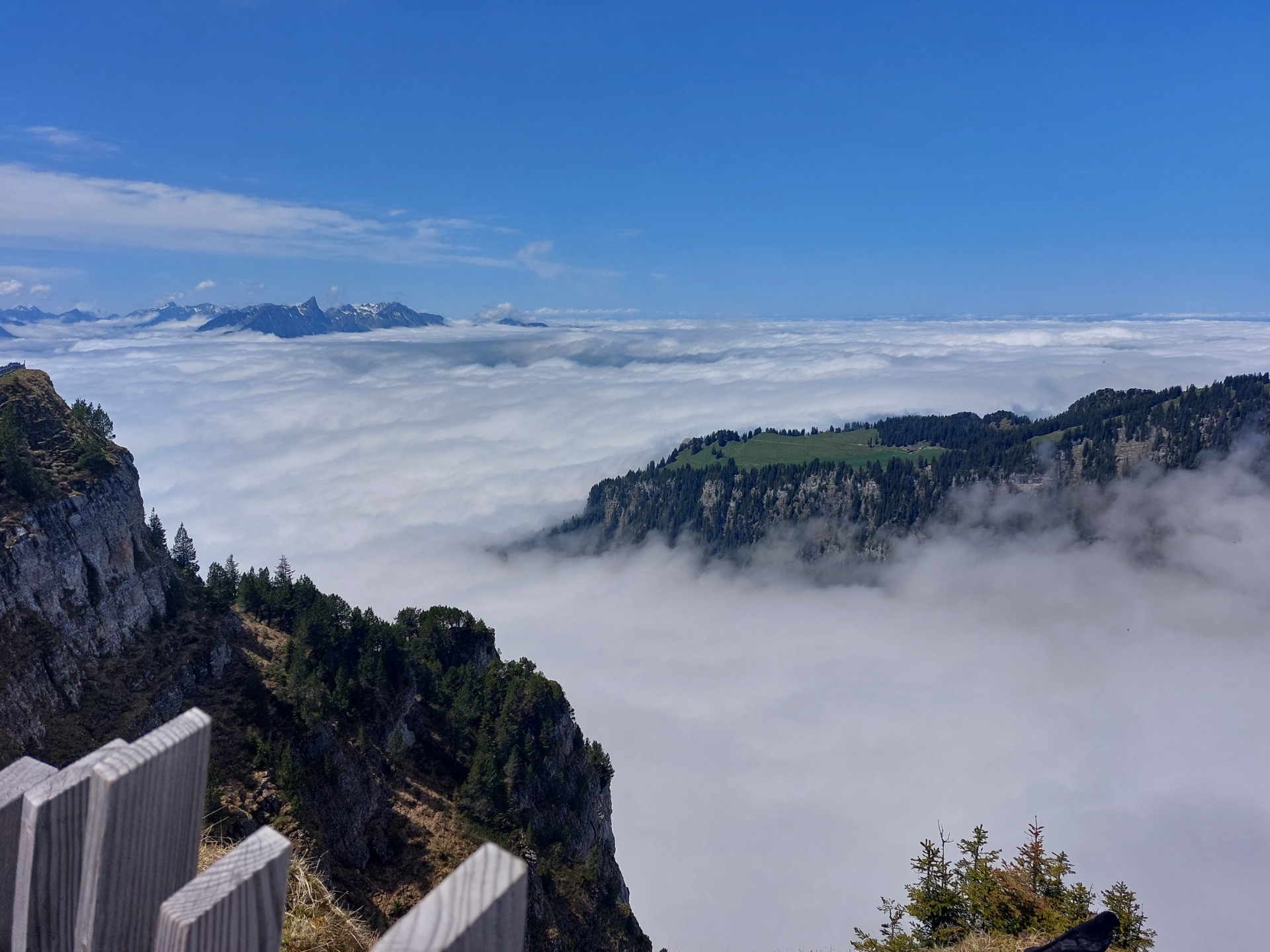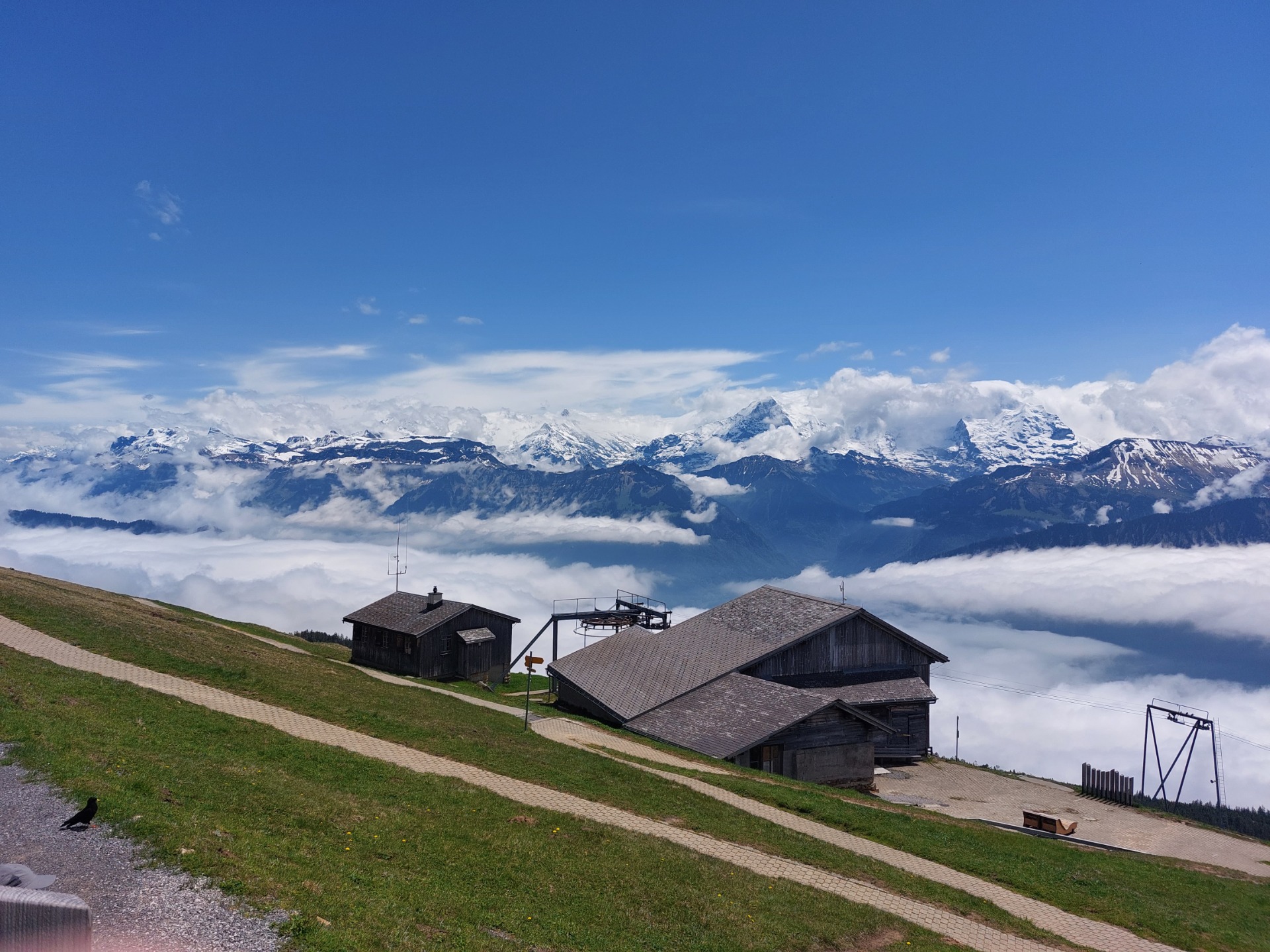 Vorig jaar ben ik ook de Niederhorn opgegaan en heb ik een flinke hike gemaakt. Deze keer gingen we met zijn vieren naar boven en besloten we dezelfde gondel ook weer naar beneden te nemen. Toch was er een groot verschil met vorig jaar: Deze keer was het bewolkt en stonden we boven de wolken! Wat ongelooflijk mooi!